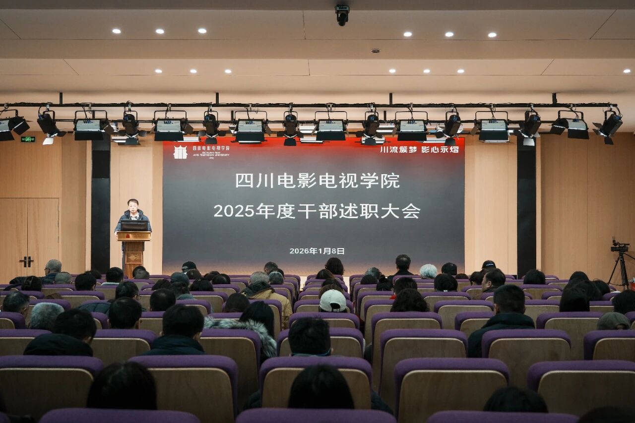 1月8日,四川电影电视学院召开2025年度干部述职大会。学校校级领导、各二级学院院长/副院长、各职能部门负责人、基层党委负责人进行了现场述职。