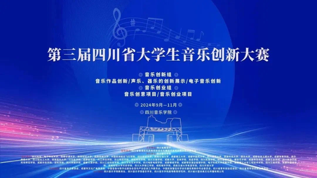 此次大赛本着“以赛促教、以赛促学、以赛促创”的宗旨,力求切实提高大学生创新精神和实践能力。共分两个参赛组别:音乐创新组(音乐作品创新;声乐、器乐的创新展示)、音乐创业组(音乐创意项目、音乐创业项目)。参赛选手包括四川省31所高校的400余名选手。