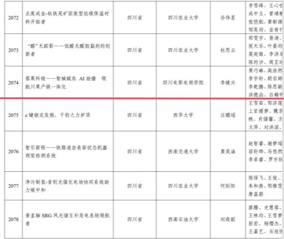 近日,教育部正式公布中国国际大学生创新大赛(2025)获奖名单(教高函〔2026〕1号)。我校大学生创新创业中心培育的项目“蓉果科链——智械赋农AI助播 领航川果产销一体化”(项目负责人:李健兴)从全国600余万个项目中脱颖而出,荣获国赛铜奖,为学校争得了荣光。