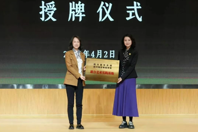 仪式现场,四川爱乐乐团与四川电影电视学院举行了庄重的相互授牌环节,标志着双方正式建立深度合作关系,联合艺术实践基地正式落地。