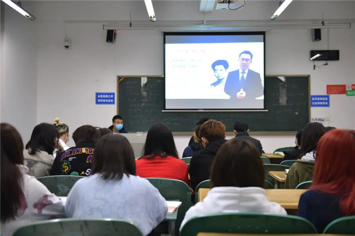 上午7:20,同学们早已整齐安静地坐在教室里,在各班辅导员的带领下通过手机或教室电子屏幕,观看学习党史视频。