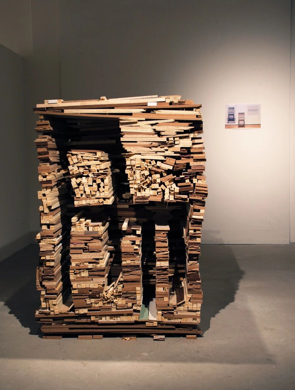 当工业化的痕迹浮现,在《第四把椅子》中,簇锦的工业记忆在数字时代被挖掘和塑造。走访各个家具厂之后,作品以家具产业的边角料与废材堆叠出一个“缺席的椅子”。它在视觉上回应了“一把与三把椅子”的经典艺术命题,却将焦点转向簇锦作为家具重镇的历史经验:劳动的痕迹与集体的情感,在废料与残影之间被悄然保存。叙事延伸至当下,《无界》以“废弃衣物的再生”为切入点,邀请居民捐赠旧衣并将其转化为创作材料。经过色彩的整理与纤维的交织,柔软而流动的织体逐渐生成一个共生性的装置。在这共同编织的过程中,社区关系被形象化为一种隐喻——在无界的织网中,私人与公共、碎片与整体被重新缝合,勾勒出可共融的社区景观