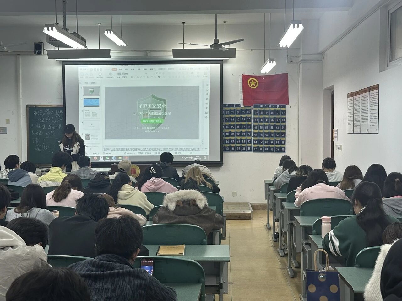 各班级统一组织学生,通过中国大学生在线官网、视频号、抖音、B站等平台,集中收看“千万师生同上一堂国家安全教育课”主题视频。课程结合高校学生特点,系统讲解国家安全重要意义、法律要求与现实风险,让同学们在云端课堂中接受权威、系统的安全教育,进一步增强维护国家安全的思想自觉与行动自觉。