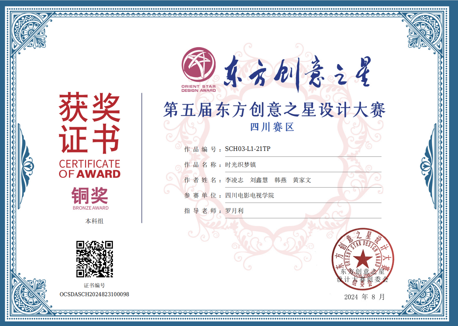 2024年8月第五届东方创意之星设计大赛 铜奖 李凌志 韩燕 刘鑫慧 黄家文23级 公共艺术03班S《时光织梦镇》