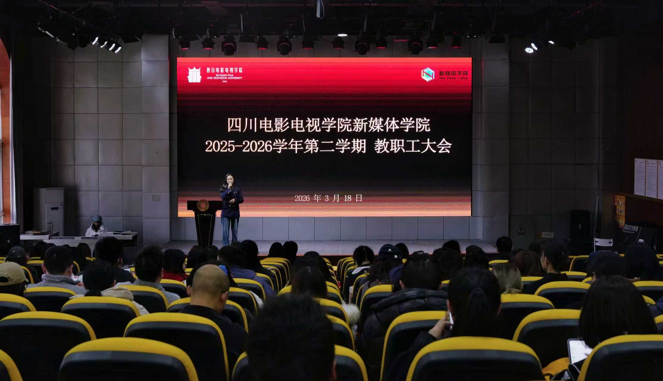 为明确新学期工作方向与核心要求,保障学院教育教学、科研建设等各项工作平稳有序开展,3月18日下午16:30,四川电影电视学院新媒体学院在安仁校区金厅召开2025-2026学年第二学期第二次教职工大会。全体教职工参会,会议围绕党建工作、学生管理、课程建设等多项核心议程展开部署,为学院下一阶段发展划定清晰路径。