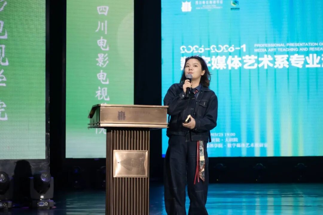 汇报开场,数字媒体艺术教研室周雷主任发表致辞,对同学们的专业成长给予高度肯定。“从代码到创作,你们的作品里,既有技术的精进,更有思维的蜕变。”周雷主任表示,专业始终坚守“技术为骨、创意为魂”的教学方向,勉励同学们在夯实专业基础的同时,保持对艺术与社会的深度思考,践行复合型数字艺术人才的成长之路。