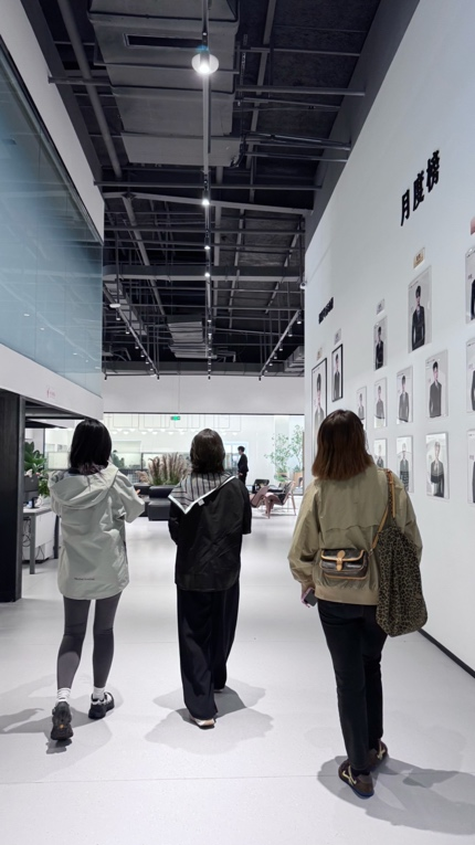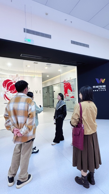 本次走访由新媒体学院执行院长段晓冉、副院长毕园、党委副书记范琳琳带队,网络与新媒体教研室主任龙灵及专业教师安林妮共同参与。学院一行实地参观了无忧传媒成都团播基地的直播间及相关运营空间,详细了解企业在内容生产、账号孵化、团队协作、直播运营等方面的实际运作流程,对当前新媒体直播行业一线岗位需求与能力要求有了更加直观、深入的认识。