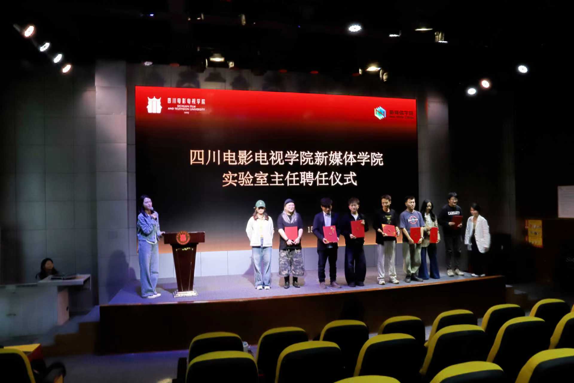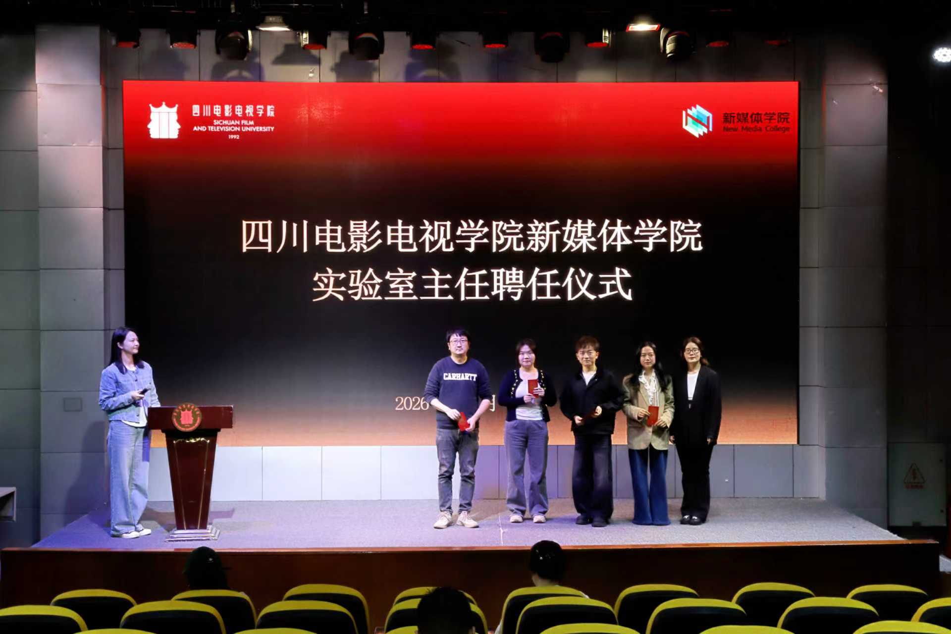 为紧跟影视传媒与AIGC技术发展前沿,规范实验室建设管理,推动学院教学科研工作提质增效,4月15日,新媒体学院实验室主任聘任仪式在金厅隆重举行。学院领导班子成员、全体教职工出席仪式,共同聚焦实验室建设与发展,明确工作方向,凝聚发展合力。