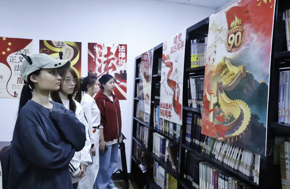 活动伊始,同学们率先走进闻院阅览室,参观红色主题海报展,开启了一场穿越时空的红色溯源之旅。一幅幅斑驳的历史海报、一段段厚重的纪实文字,生动再现了建党105周年的光辉历程与红军长征胜利90周年的不朽荣光,将革命先辈的奋斗足迹与崇高信仰具象化、可视化。静谧的阅览氛围中,同学们驻足凝视、轻声交流,在与历史画面的对视中,深刻感悟革命精神的内涵,完成了一次与革命先辈的思想共振、精神对话。