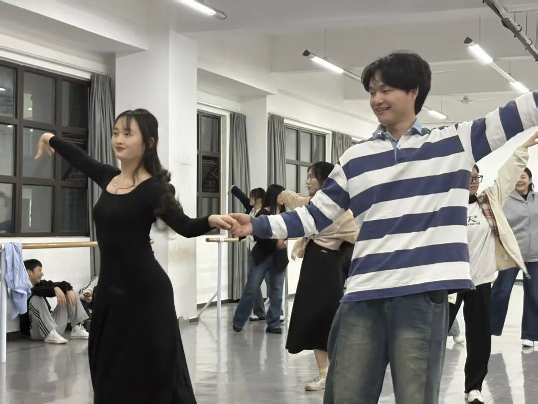 4月16日晚,杨茂娇老师带来《春之圆舞曲“校园华尔兹”》主题公开课,以沉浸式实景教学打破传统舞蹈课堂的枯燥感。课程围绕华尔兹文化认知、礼仪规范与基础舞步展开,杨茂娇老师亲自示范邀舞、架型、谢礼等礼仪动作,细致讲解起伏、移动等基础舞步要领,帮助同学们消解对社交舞蹈的羞怯感。课堂氛围热烈有序,同学们两两搭档、相互配合,在学习肢体协作的过程中感受尊重与包容,杨茂娇老师全程巡回指导、暖心鼓励,让大家在优雅律动中塑造良好体态、提升个人气质,同时突破社交局限,收获自信与协作的快乐。