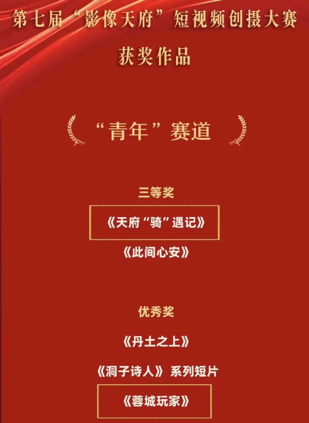 近日,第七届“影像天府”短视频创摄大赛获奖名单正式揭晓,由新媒体学院全媒体品牌建设及运营创新班、短视频创作创新班学生主创,赵啁皓、陈秋雨、苗茜愉、陈哲四位老师指导的两部作品《天府“骑”遇记》《蓉城玩家》从众多参赛作品中强势突围,分别斩获青年赛道三等奖与优秀奖,以青春视角结合前沿技术,为“发现成都之美”的赛事主题写下生动且别样的注解。
