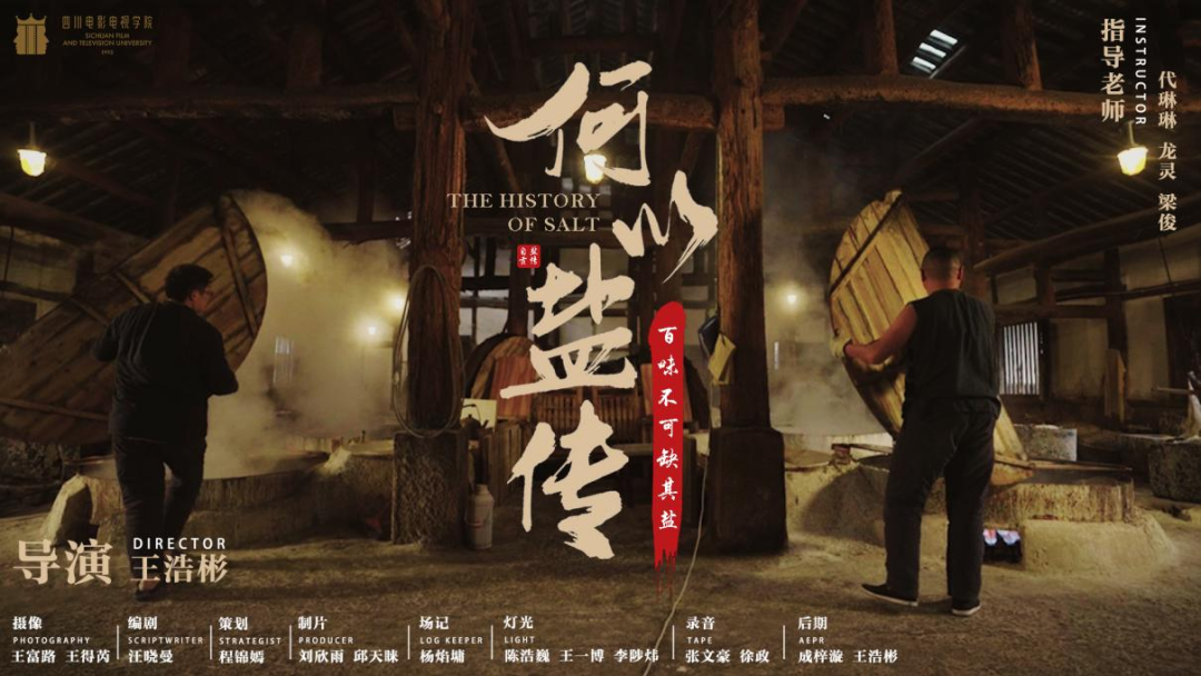 另一部作品《何以盐传》由代琳琳、龙灵、梁俊共同指导,王浩彬、王得芮、陈浩巍等同学主创,深耕自贡千年井盐文明,全景呈现国家级非遗“深钻汲制技艺”,解码一粒盐所承载的匠人智慧与地域文化密码,展现了自贡井盐从古代到当代的传承脉络与活态延续。该片还挖掘了井盐与富顺豆花的关联,让非遗文化更具生活温度。