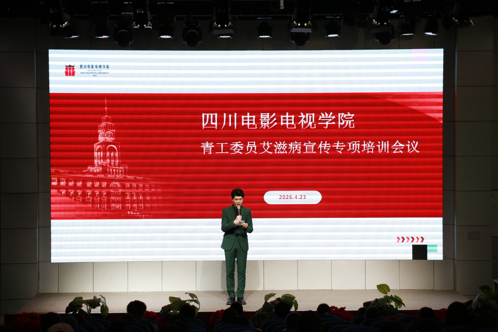 为深入推进健康校园建设,全面提升青年学生干部艾滋病防治知识水平与自我防护能力,切实筑牢校园公共卫生安全防线,4 月 23 日 13 时,四川电影电视学院青工委员艾滋病防治宣传专项培训会议在安仁校区蓝厅顺利召开。成都市疾控中心艾滋病防治专业讲师徐菁佩、大邑县疾控中心性病艾滋病防治科科长何丽应邀莅临指导并授课;校务委员、后勤基建处处长柳运西,后勤基建处副处长刘柠琦,校团委副书记曹沙出席会议,安仁校区全体青工委员参加培训。