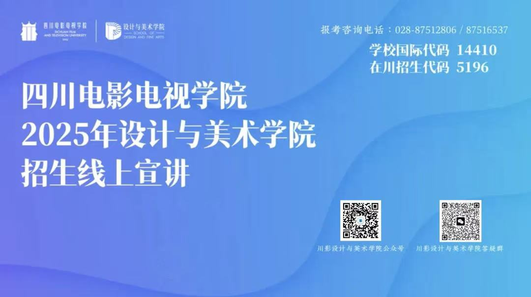 欢迎2025年高考生报考四川电影电视学院设计与美术学院视觉传达设计、公共艺术、漫画专业。我们在川影等你! — —END— —— —川影设计与美术学院出品— —视频|川影设美排版 |高凤仪编辑 | 张籍允统筹 | 梁琛责审 | 任樱、梁琛终审 | 江金阳、董庆